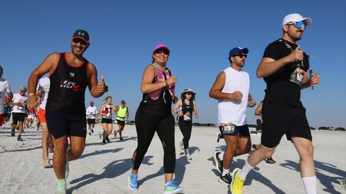 Runfire Salt Lake Ultra Trail Maratonu'nun ikinci gün yarışları Tuz Gölü'nde 4 kategoride başladı; 750 sporcu mücadele ediyor, organizasyon yarınki yarışlar ve ödül töreniyle sona erecek.