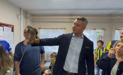 ZİYARET ESNASINDA RİZE'NİN SİMGELERİNDEN ATMACA KUŞUNU YAKINDAN İNCELEYEN BAŞKAN SARAN, "ATMACA ÇOK GÜZEL. YANIMDA GÖTÜREBİLİR MİYİM?" DEDİ.