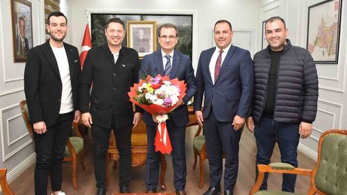 Salihli Kaymakamı Ali Güldoğan’a 45 Numaralı Yeşil-Beyaz Forma HediyeZiyaret ve bilgilendirmeSalihli Belediyesi Spor İşleri Müdürü Çetin Hazer ile Salihli Belediyesi Spor Kulübü Başkanı Emrah Yalçın ve kulüp yöneticileri Esat Göldeli, Fırat Deniz ile Avukat Oğuzhan Sönmez, Kaymakam Ali Güldoğan'ı makamında…
