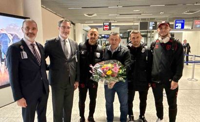 Kırmızı-beyazlı ekip bugün Frankfurt Havalimanı'na inerken, oyuncular ve teknik heyet burada resmi temsilciler, iş insanları ve taraftarlar tarafından karşılandı.