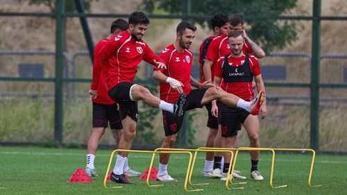 Samsunspor, UEFA Avrupa Ligi play-off rövanşında Panathinaikos maçı öncesi Nuri Asan Tesisleri'ndeki antrenmanda Carlo Holse ve Anthony Musaba'nın takıma dönmesine sevindi.