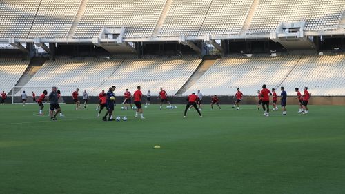 UEFA Avrupa Ligi play-off turunda yarın Panathinaikos'a konuk olacak Samsunspor, Atina Olimpiyat Stadı'ndaki son antrenmanını tamamladı; Hosle ve Musaba sakat, Souza statü gereği yok.