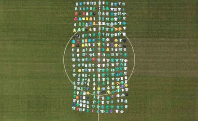 BURSA BURSASPOR TİMSAH ARENA’DA GERÇEKLEŞTİRİLEN ÖZEL ÇALIŞMADA, KOLEKSİYONER MUSTAFA TURAN’A AİT, BİR KISMI MAÇLARDA GİYİLMİŞ, BİR KISMI İSE İMZALI KOLEKSİYON FORMALARINDAN OLUŞAN YAKLAŞIK 300 FORMA, SAHADA ÇİM ZEMİNE DİZİLEREK FORMA ŞEKLİNDE KOREOGRAFİ OLUŞTURULDU.