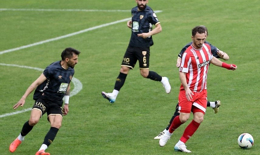 Trendyol 1. Lig'in 31. Haftasında Geosis Boluspor ile Teksüt Bandırmaspor, Çorum Şehir Stadı'nda karşılaştı. Bir pozisyonda Bandırmaspor oyuncusu Ndongalai, rakibiyle mücadele etti.
