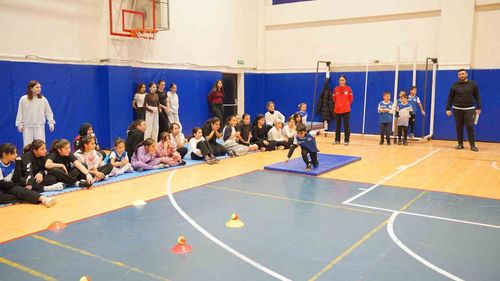 Tuzla Belediyesi'nin Ara Tatil Spor Şenliği'nde 5-14 yaş arası yaklaşık 500 çocuk sporla buluştu; etkinlikte fair-play ve dostluk ön plandaydı.