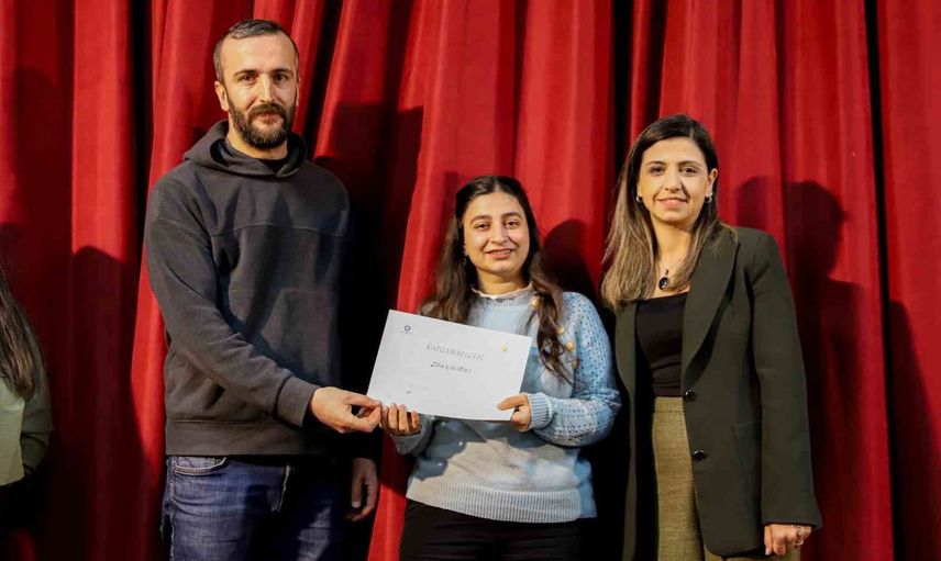 3D animasyon eğitimini tamamlayan kadınların belgeleri, Diyarbakır Büyükşehir Belediyesi Ali Emiri Konferans Salonunda düzenlenen törenle takdim edildi. Törende konuşan Kadın ve Aile Hizmetleri Dairesi Başkanı Özden Gürbüz Sümer, dijital dünyada kadınların daha fazla yer almasının önemine vurgu yaptı.
