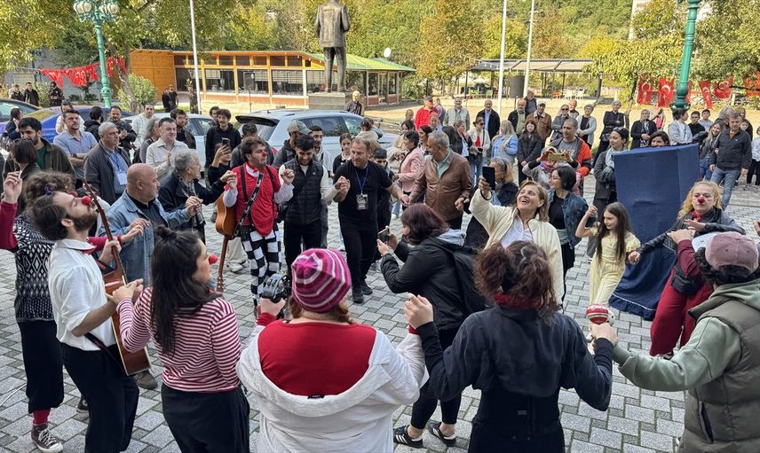 Festival kapsamında belediye başkanlığı önünde buluşan tiyatro oyuncuları ve katılımcılar, yöresel şarkılar eşliğinde horon oynayarak Cumhuriyet Meydanı'na yürüdü ve festival coşkusunu ilçeye taşıdı.
