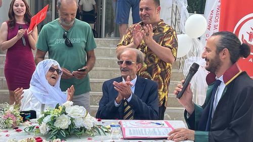 Depremzede Hatice ve Seydi Ali Özer çifti, 70. evlilik yıl dönümünü Antalya'daki huzurevinde nikah tazeleme töreniyle kutladı.
