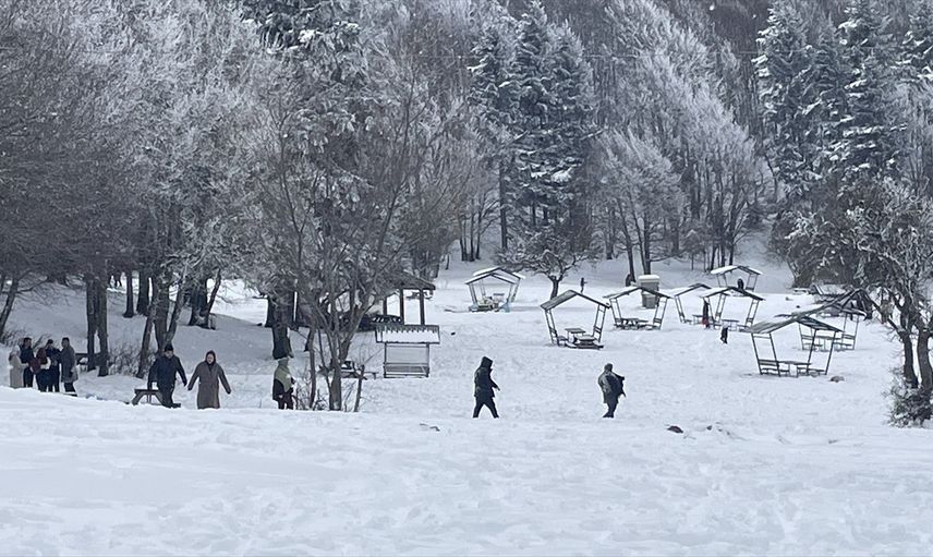 Kent merkezine yaklaşık 35 kilometre mesafedeki Abant, doğal güzellikleri ve kar yağışının güzellikleriyle gelen ziyaretçileri ağırladı. Hafta sonu boyunca aralıklarla yağan kar, parkın bembeyaz bir örtü ile kaplanmasını sağladı.