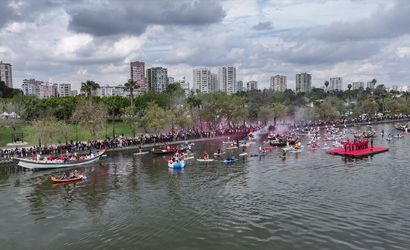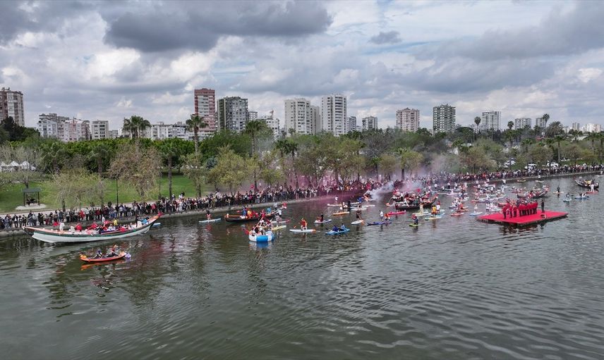 Su kortejine kano, paddle board ve kürek takımları yanı sıra Büyükşehir Belediyesi'nin gondolları da katıldı. Nehir kıyısında toplanan vatandaşlar, renkli dumanlarla süslenen korteji büyük bir heyecanla izledi.