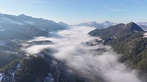Adana'nın Feke ilçesinde kızılçam ormanları ve karlı dağlar arasındaki sis, Üskiyen mevkiinde masalsı görüntüler oluşturarak doğaseverleri cezbetti.