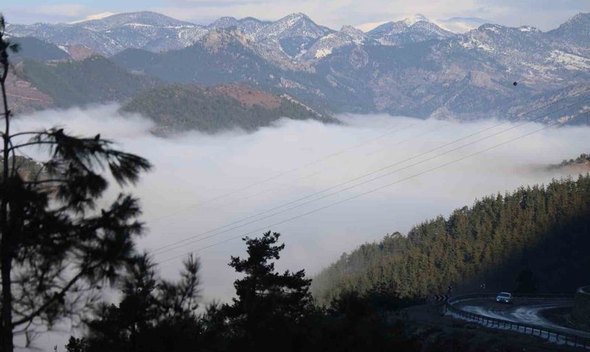 Adana’nın Feke ilçesinde, kızılçam ormanları ve karlı dağlar arasında sabah saatlerinde oluşan sis, bölgeye gelenlere büyüleyici manzaralar sundu.