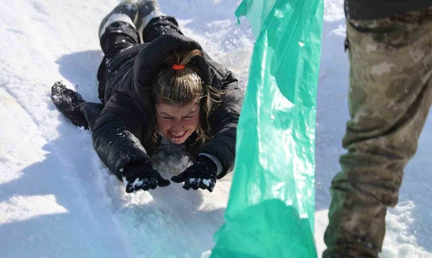 İstanbul'dan gelen Nihal Kahveci ise, "Çocuklar gibi eğleniyoruz. Herkes poşetlerle kayıyor, inanılmaz keyifli. Kızakla bu kadar eğlenemezdik" diye konuştu. Çocuklardan Ecrin Tekin "Çok eğlendik" derken, öğretmen Ömer Çağrı Korkmaz bidonla kaymanın çok eğlenceli olduğunu söyledi.