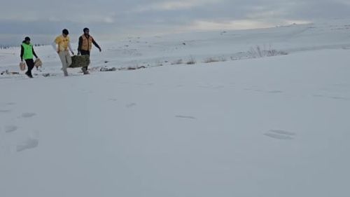 Adilcevaz'da Aktivistler Süphan Dağı Eteklerine Yaban Hayvanları İçin Yem Bıraktı