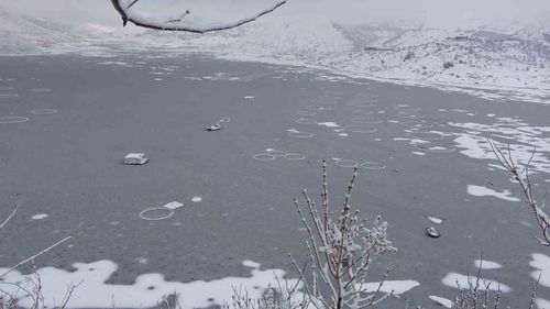 Adıyaman Çat Barajı'nın Yüzeyi Tamamen Buz Tuttu