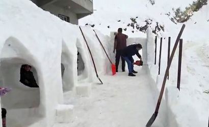 Adıyaman'ın Çelikhan ilçesine bağlı Korucak Köyü'nde birkaç gündür etkili olan kar yağışı, köy sakinlerine farklı bir hareketlilik getirdi. Yasin Bozdemir ve yakınları, evlerinin önüne kardan oyun alanı ve evler yapmaya başladı.