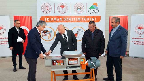 GAP desteğiyle Adıyaman'da 100 badem kavlatma, 50 ceviz soyma ve 40 zeytin silkeleme makinesi üreticilere teslim edildi.