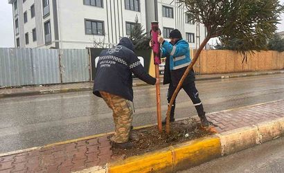 Son dönemde etkili olan şiddetli yağışlar ve rüzgarlar nedeniyle formu bozulan genç fidanlar ekipler tarafından tek tek inceleniyor ve koruyucu çıta montajları ile destekleniyor. Eş zamanlı yürütülen budama çalışmalarıyla ağaçların mevsim şartlarına karşı direnci artırılıyor ve sağlıklı gelişimleri için gerekli fizyolojik alan oluşturuluyor.