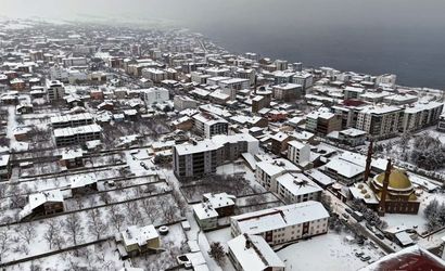 Bitlis'in sakin şehir (Cittaslow) ünvanlı ilçesi Ahlat, etkili kar yağışının ardından ortaya çıkan beyaz örtü ile havadan görüntülendi.