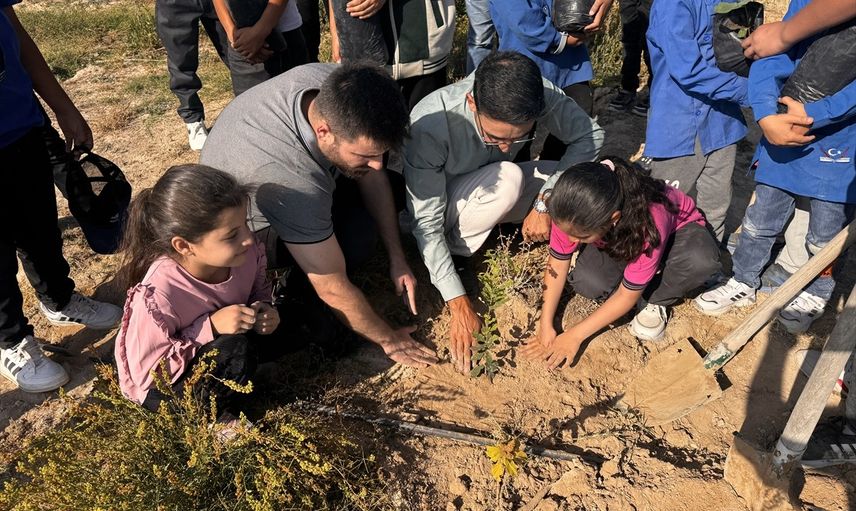 Okulun 5. sınıf öğrencisi Sümeyye Rabia Arıdal de, "Bu bölge çok kurak bir yer, ağaç dikerek burayı yeşillendireceğiz." ifadelerini kullandı.