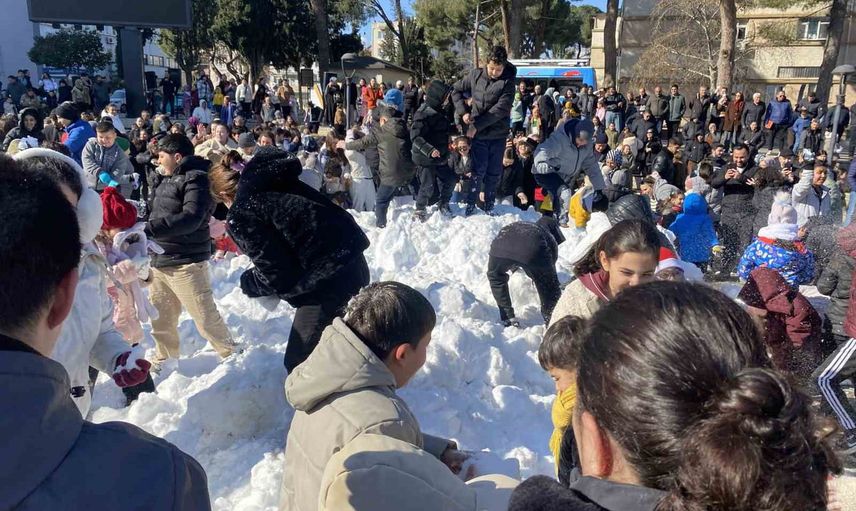 Manisa'nın Alaşehir ilçesinde yarıyıl tatiline giren çocuklara unutulmaz bir sürpriz yapıldı. İlçe merkezine uzun yıllardır kar yağmaması nedeniyle karla buluşamayan çocuklar, Dağhacıyusuf Mahallesi mevkiinden getirilen karla doyasıya eğlendi.
