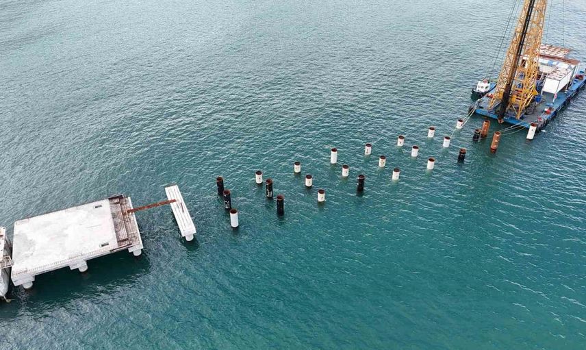 Ekipler mevcut alanda kazık güçlendirme çalışmalarına hazırlanıyor; yeni yapılacak 140 metrelik bölümde ise kazık çakma işlemleri sürüyor. Projede planlanan 72 kazıktan 39’u tamamlandı.