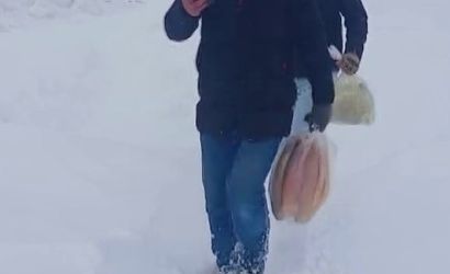 Yollar kapandı, köylüler temel ihtiyaç için metrelerce kar içinde yürüdü