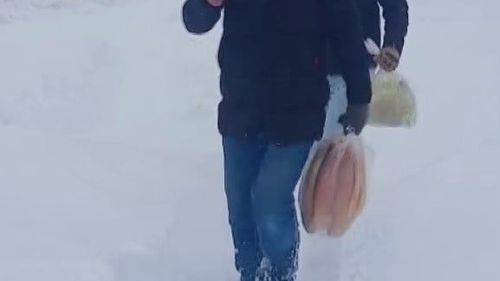 Sivas Altınyayla'da etkili kar ve tipi nedeniyle yollar kapandı; Gümişdiğin Köyü sakinleri temel ihtiyaç için 4.5 kilometrelik yolu yürüdü.