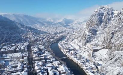 Kar yağışıyla birlikte beyaza bürünen Şehzadeler Şehri Amasya, kartpostallık görüntülere sahne oldu. Beyaz örtüyle kaplanan Harşena Dağı, Yalıboyu Evleri ve Yeşilırmak Nehri dronla görüntülendi; ziyaretçiler ortaya çıkan manzarayı hayranlıkla izledi.