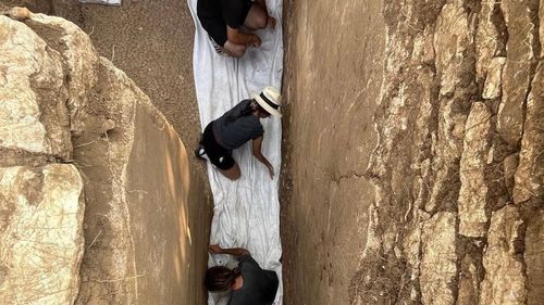 Amos antik tiyatrosunda süren 2025 kazılarında sıvalı duvarlar ve mozaikler gün yüzüne çıkarıldı; sivil yapı buluntuları antik yaşamı aydınlatıyor.
