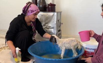 HAKKARİ'NİN YÜKSEKOVA İLÇESİNDE ANNESİ ÖLEN VE ‘UMUT’ İSMİ VERİLEN 10 GÜNLÜK KUZU, EV ORTAMINDA BEBEK ŞAMPUANIYLA YIKANIP BİBERONLA BESLENİYOR.