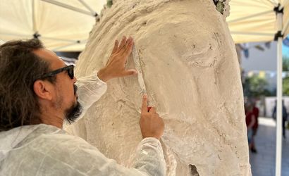 Çevikbaş, normalde atölyede çamurla ve kille yaptıkları heykeli, dış mekanda insanların her aşamasını izleyebilmesi için hızlı kuruyan alçıyla yaptıklarını belirtti.
