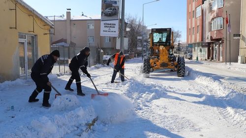 Ardahan Belediyesi Fen İşleri ve Destek Hizmetleri Müdürlüğü ekipleri, Belediye Başkanı Faruk Demir'in talimatıyla kent genelinde kesintisiz kar temizliği çalışması yürütüyor.