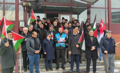 Merkez Cami önünde toplanan grup, Gazze'ye yönelik saldırıları kınadı