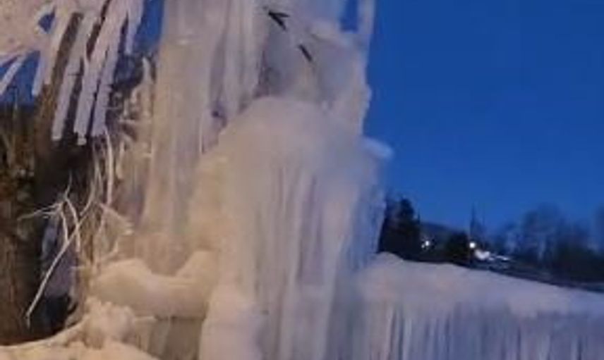 Ardahan merkeze bağlı Çimenkaya köyü ile Uzunova köyü arasında patlayan su hattından fışkıran su, hava sıcaklığının sıfırın altında seyretmesi nedeniyle donarak dev bir buz kütlesi oluşturdu.