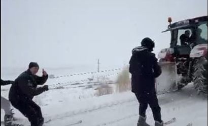 Ardahan Tepeler Köyü'nde Gençler Traktörle Kayak Keyfi