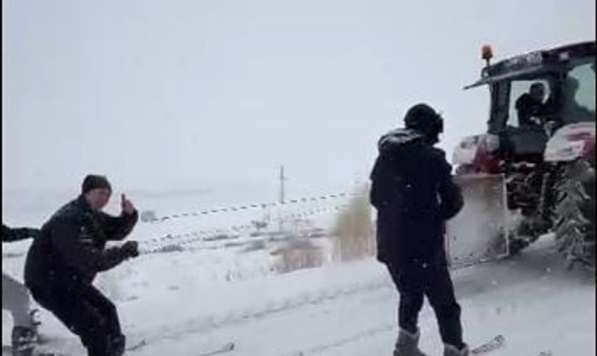 Gençler, bir traktörün arkasına bağladıkları kayakla kayarak renkli görüntüler oluşturdu. Traktörle çekilen kayak üzerinde kayarken adrenalin dolu anlar yaşayan katılımcılar, kış mevsiminin tadını çıkardıklarını belirtti.