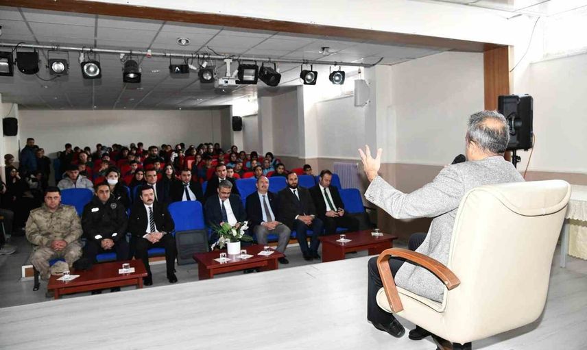 Vali Çiçek, öğrencilerin sorularını yanıtlayarak eğitim hayatı, kariyer planlaması ve kişisel gelişim konularında değerlendirmelerde bulundu ve öğrencilere tavsiyelerde bulundu.