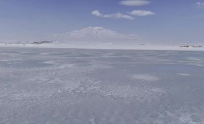 Bitlis’in Adilcevaz ilçesi sınırlarında yer alan ve 'kuş cenneti' olarak bilinen Arin Gölü, etkili olan soğuk hava nedeniyle kısmen dondu.