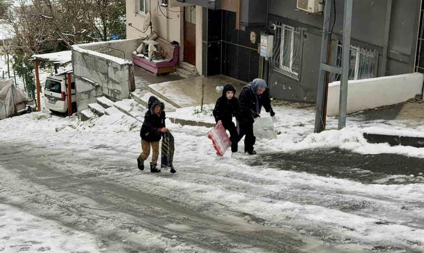 İstanbul’da etkili olan kar yağışının ardından Arnavutköy'ün Mustafa Kemal Paşa Mahallesi beyaz örtüyle kaplandı. Mahalle sakinleri ve çocuklar, poşetlerle kayarak sokağı adeta bir kayak merkezine çevirdi.
