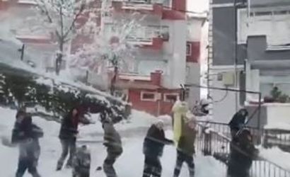 Artvin'de etkili olan yoğun kar yağışının ardından okullar bir gün süreyle tatil olurken, mahallenin kayış alanında oyun oynayan çocuklar, alanı temizlemeye gelen Artvin Belediyesi'ne ait iş makinesine tepki gösterdi. Oyun alanlarının bozulmasını istemeyen minikler, kar topu atarak müdahaleye karşı çıktı.