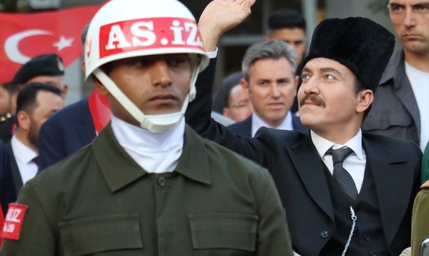 Temsili heyet, Karaağaç Köprüsünde karşılanmasının ardından Atatürk Kongre Müzesi önüne kadar eşlik edildi. Atatürk'ü temsilen sahneye çıkan Devlet Tiyatrosu oyuncusu Abdulsamet Sünbül, üstü açık arabayla güzergah boyunca halkı selamladı.