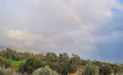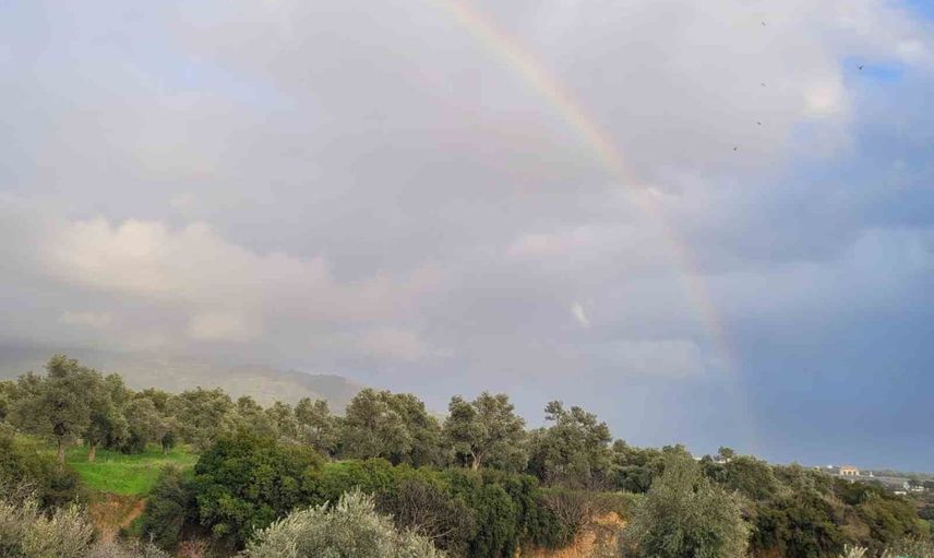 Aydın'ın Efeler ilçesinde etkili olan sağanak yağışın ardından ortaya çıkan gök kuşağı, gökyüzünde izleyenlere görsel bir şölen sundu.