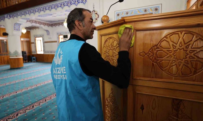 Temizlik çalışmaları, ilçe genelinde 69'u kırsal mahalle olmak üzere toplam 73 mahallede bulunan 100'den fazla cami ve mescitte gerçekleştirilecek. Belediye ekipleri tarafından yürütülen çalışmalar kapsamında camilerin iç ve dış temizliği titizlikle yapılırken, aynı zamanda halılar yıkanıyor ve ortak kullanım alanları dezenfekte ediliyor.