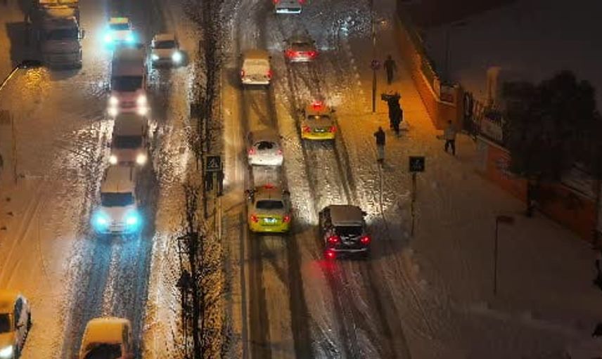 Kar, sabaha karşı şiddetlenirken, haftanın ilk iş günü yola çıkan sürücüler karla kaplı yollarda güçlükle ilerledi. Bazı araçların yolda kaldığı görüntülendi.
