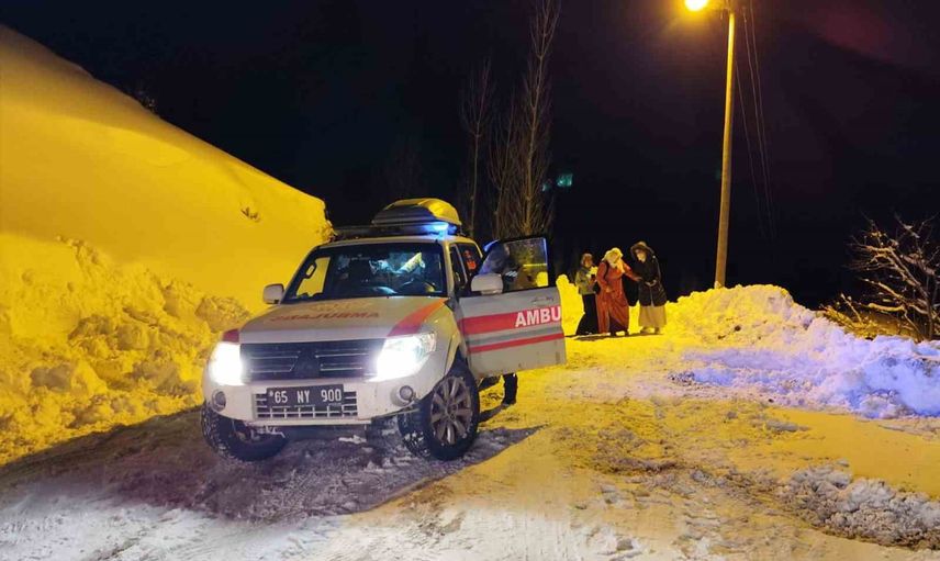 Van’ın Bahçesaray ilçesinde rahatsızlanan hamile kadın, ekiplerin karlı yolları 5.5 saatlik çalışması sonucu hastaneye ulaştırıldı.