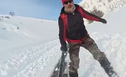 Her yıl kayak merkezine giden doğaseverler, kayak takımlarını giyip köy yoluna çıktı ve burada kısa süreli bir pist keyfi yaşadı. Yaptıkları kayak çalışmasını kayda alan çiftin görüntüleri sosyal medyada paylaşıldı ve kısa sürede yüzlerce beğeni aldı.
