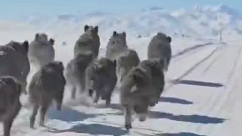 Van'ın Başkale ilçesi Özpınar Mahallesi'nde sürü halinde görülen yaban domuzları vatandaşları tedirgin etti, trafik kazası riski gündeme geldi.