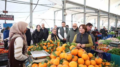Başkan Hatice Gençay, Didim semt pazarlarını gezerek esnafın taleplerini dinledi; düzenleme ve denetimlerle adil, sağlıklı pazaryerleri hedefleniyor.