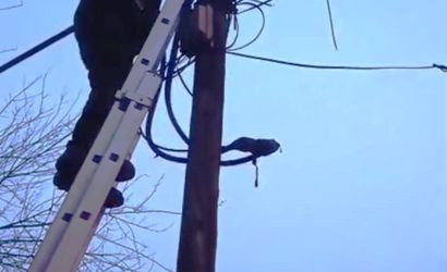 Ekipler, mahsur kalan kediye ulaşmak için direğe merdiven dayadı. İtfaiye erinin güvenli şekilde ulaştığı kedi bulunduğu yerden alınarak aşağı indirildi.